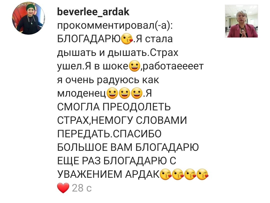 В итоге, я проработала свои основные страхи на тренинге и могу сама помочь любимому человеку, который действительно хочет решить свою проблему.