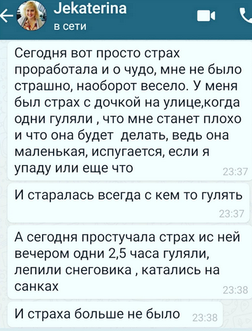 В итоге, я проработала свои основные страхи на тренинге и могу сама помочь любимому человеку, который действительно хочет решить свою проблему.