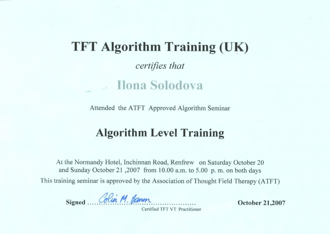 Единственный в мире русскоязычный Сертифицированный тренер по технологии Мыслеполя, ученица Р. Каллахана - основателя метода.